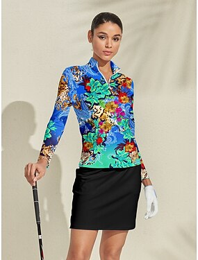 Mujer Camisas de polo ropa de golf Verde Oscuro Protección Solar Ligero Camiseta Floral Ropa de golf para damas Ropa Trajes Ropa Ropa