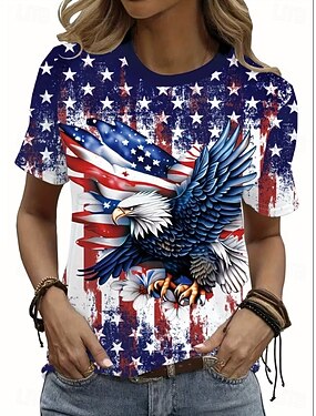 día de la independencia americana Mujer Camiseta Estampado Graphic Bandera Letra Vintage Elegante Clásico Manga Corta Cuello Barco Tops regulares Diario Azul Piscina Negro Rojo Verano Primavera