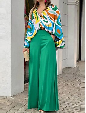 Mujer Conjuntos de pantalones parte superior del bolero Manga Larga Cuello Camisero Floral Estampado Moda Ropa de calle Casual Diario Exterior Azul Piscina Amarillo Rosa Verano Holgado