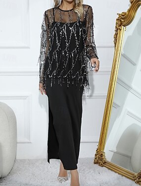 Mujer conjuntos de falda parte superior del bolero Manga Larga Escote Redondo Color sólido Lentejuelas Borlas Elegante Activo Fiesta Fiesta de Cóctel Fiesta / Cóctel Negro Primavera Ajuste regular