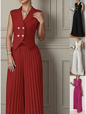 Mujer Conjuntos de pantalones Sin Mangas Escote en Pico Color sólido Frunce Plisado Elegante Moda Ropa de calle Casual Diario Exterior Negro Blanco Gris Oscuro Verano Ajuste regular