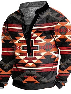 Hombre azteca Sudadera Étnico retro de la vendimia Manga Larga Cuello Alto Regalo Viaje Ropa de calle Amarillo Azul Piscina Naranja Botón frontal Otoño Invierno Diseñador S M L XL XXL XXXL