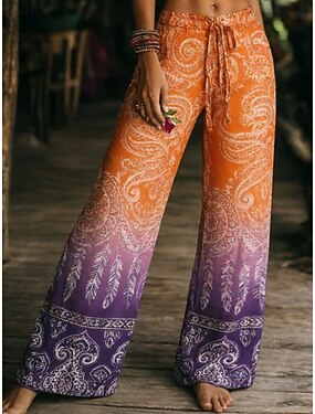 Mujer Perneras anchas Pantalones Vacaciones Moda Boho Longitud total Media cintura Graphic Cachemir Bolsillo Cintura elástica Estampado Confortable Transpirabilidad Rígido Diario Exterior Vacaciones