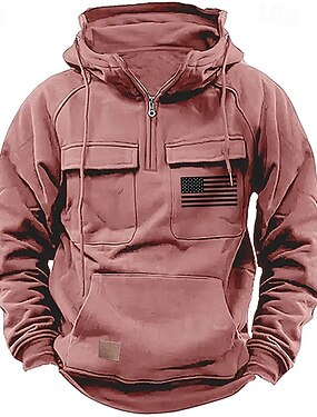 Hombre Sudadera Sudadera con capucha y cremallera de un cuarto Negro Rosa Vino Azul Piscina Verde Trébol Con Capucha Bandera Correa Bolsillo Deporte Diario Festivos Ropa de calle Básico Casual