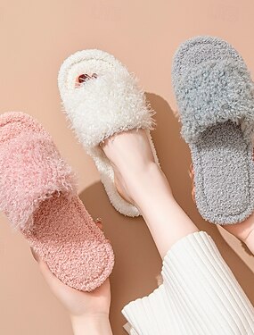 Pantuflas de algodón de felpa para mujer, otoño e invierno, con punta abierta, para interior y hogar, suaves y peludas, calzado cálido y acogedor.