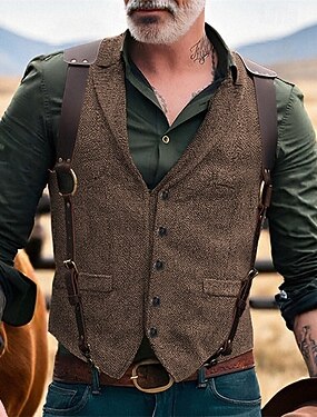 Hombre Chaleco de ante Boda Calle Festivos Noche Estilo retro Casual Otoño Invierno Bolsillo Ante Mantiene abrigado Color puro Botonadura Simple Escote en Pico Ajuste regular Negro Marrón Chaleco