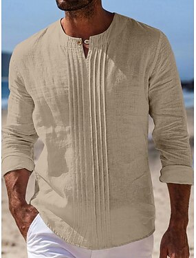 Hombre Camisa Camisa de lino Camisa de verano Camisa de playa Color sólido Casual Vacaciones Azul Piscina Negro Blanco Caqui Manga Larga Collar mandarín Verano Ropa Frunce