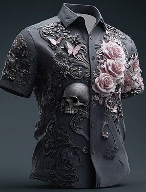 Hombre Estampado Floral Resplandor de neón Flores camisa hawaiana Abotonar la camisa Manga Corta Hawaiano Vacaciones Ropa de playa Verano Primavera Cuello Vuelto Impresión 3D camisas con cuello Negro