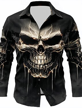 Camisa de Hombre con Disfraces de Esqueleto de Acabado Metálico Botón Manga Larga Estilo Punk Gótico Oscuro al Aire Libre Fiesta Color Negro Gris Dorado