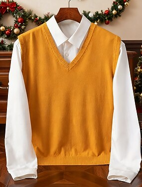 Hombre Suéter de punto Chaleco Estriado Tejer Tops regulares De Punto Plano Escote en Pico Moda Básico Vacaciones Ropa Cotidiana Ropa Primavera Otoño Amarillo Rojo S M L
