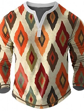 Hombre Graphic Geométrico Étnico Henley Shirt Tee Manga Larga Vintage Moda Design Casual Diario Exterior Otoño Primavera & Otoño De color verde oscuro Marrón oscuro Verde lechoso Henley Camiseta