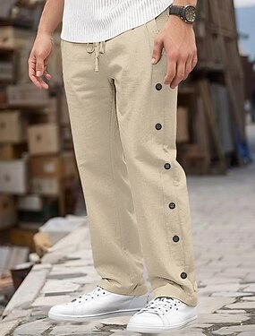 Hombre Pantalones de lino Pantalones Pantalones de verano Pantalones de playa Correa Botón lateral Pierna recta Plano Comodidad Transpirable Hasta el Tobillo Casual Diario Festivos Moda Estilo clásico
