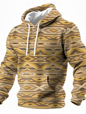 Hombre azteca Sudadera Étnico retro de la vendimia Manga Larga Cuello Barco Ropa de calle Amarillo Marrón Correa Otoño Invierno Diseñador S M L XL XXL XXXL