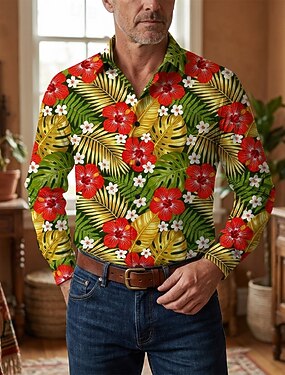 Retro Antiguo Años 70 Camisas Camisa hawaiana Larga Hippie Cachemir Disfraz Hombre Mascarada Festival de Música Fiesta Ropa Cotidiana Adulto Camisas