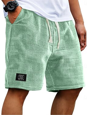 Hombre Pantalones cortos de gofres Pantalones cortos de verano Pantalones cortos de playa Pantalones cortos casuales Correa Cintura elástica Color sólido Comodidad Longitud de la rodilla Diario
