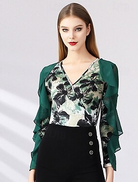 Baile de Salón Cima Estampado Mujer Fiesta Entrenamiento Rendimiento Manga Larga Licra Nailon