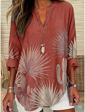 Mujer Camisa Sayo Estampado Floral Graphic Vintage Diario Elegante Manga Larga Escote en Pico Tops regulares Diario Festivos Rojo Verano Primavera