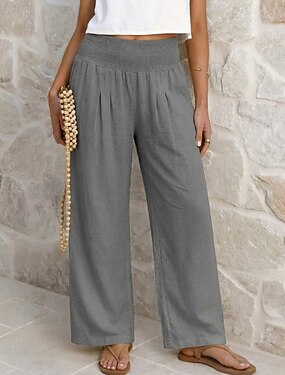 Mujer Pantalones de lino y algodón Perneras anchas Chinos Pantalones de verano Vacaciones Ropa de calle Básico Longitud total Media cintura Plano Bolsillo Cintura elástica Comodidad Cómodo Rígido