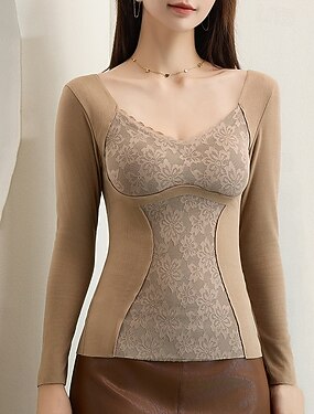 Mujer Ropa interior térmica Casual Confort Color puro Hogar Diario Sin Mangas Escote en Pico Negro Marrón Beige Gris Primavera Otoño Invierno A Medida