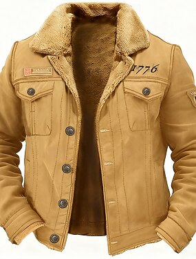 Hombre Letras estampadas 1776 Chaqueta de lana Chaqueta tipo cargo Chaqueta de sherpa Táctico Mantiene abrigado Vintage Exterior Hogar Bordado Múltiples bolsillos Abrigos de invierno Otoño Invierno