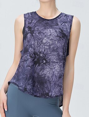 Mujer Tie-dye Camiseta sin mangas Camiseta Fitness Holgado Elástico Reductor del Sudor Transpirable Tenis pepinillo Yoga Cuello Barco Camiseta Negro Morado Azul Ropa de tenis