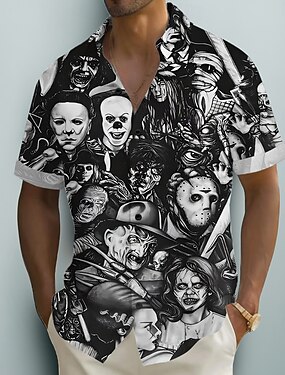 Hombre Payaso espeluznante Retro bufón Camisa Camisa de verano Abotonar la camisa Manga Corta Gótico punk oscuro Festivos Ropa de calle Verano Cuello Vuelto Impresión 3D Camisa tipo lino Negro