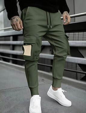 Hombre Pantalones cargo Pantalón Jogger Pantalones Correa Cintura elástica Multi bolsillo Color sólido Resistente al Viento Comodidad Diario Exterior Festivos Ropa de calle Elegante Negro Verde