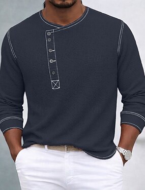 Hombre Camisa Camisa de gofres Camisa de manga corta Camisa casual Abotonar la camisa Rosa Azul Marino Azul Morado Verde Trébol Manga Larga Plano Cuello Barco Casual Diario Ropa Elegante Moda Casual