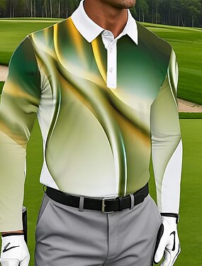 Hombre Geométrico Golf Polo Manga Larga Camisas de polo Diseño Casual Exterior Ropa Deportiva Ropa Cotidiana Impresión 3D Botones Primavera Otoño Invierno Gris Oscuro Azul Piscina Verde Trébol