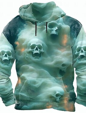 Hombre Cráneos 3D Sudadera Punk Exagerado Gótico Casual Manga Larga Cuello Barco Con Capucha Ropa de calle Discoteca Azul Piscina Verde Claro Verde Trébol Gris Correa Otoño Invierno Diseñador S M L