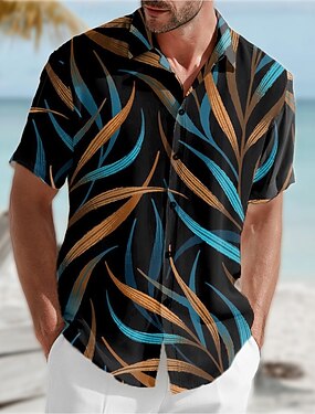 Hombre Camisa Camisa de manga corta Camisa de verano Camisa casual Camisa de playa Negro Blanco Verde Claro Azul claro Manga Larga Plano Cuello alto Vacaciones Hawaiano Abotonar Ropa Algodón Mezcla