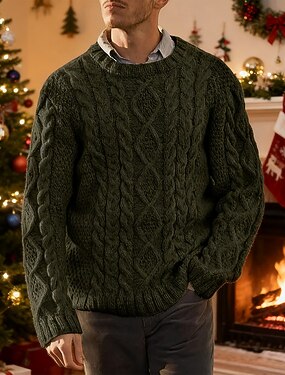 Hombre Pulóveres Suéter de punto Estriado Cable Tejer Recortado De Punto Escote en Pico Noche Fin de semana Ropa Otoño Invierno Verde Ejército Beige M L XL