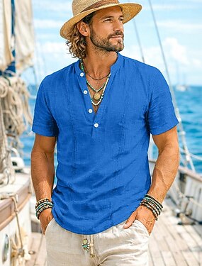 Hombre Camisa Camisa de lino Camisa Guayabera Camisa de manga corta Camisa de verano Ropa de playa Plano Casual Diario Blanco Azul Real Caqui Azul claro Manga Corta Cuello Verano Ropa