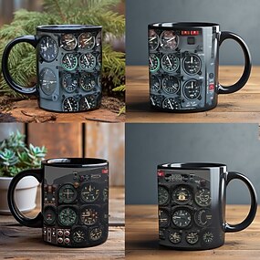 Taza con panel de instrumentos de cabina de nave espacial, taza de café de cerámica negra de 330 ml/12 oz, taza de regalo creativa para piloto aeroespacial para entusiastas del vuelo, ingenieros,