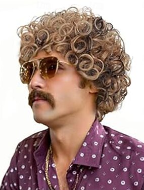 Peluca afro corta para hombre, peluca disco rizada, accesorio de disfraz estilo años 70 y 80, color marrón mixto.