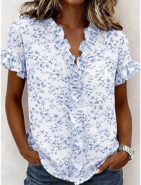 Mujer Parte superior con ojales Camiseta de punto Con Texturas Graphic Plantas Moda Clásico Manga Larga Escote en Pico Tops largos Casual Diario Playa Azul Piscina Blanco Rosa Verde Trébol Azul claro