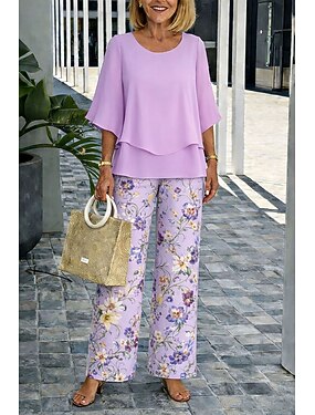 Mujer Conjuntos de pantalones Media Manga Mariposa Escote Redondo Floral Graphic Elegante Vacaciones Casual Diario Playa Azul Piscina Rosa Morado Primavera verano Holgado