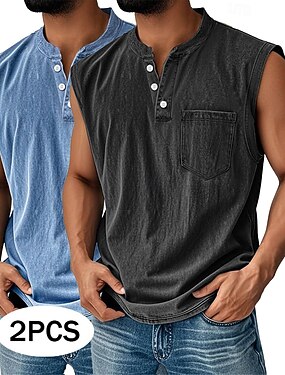 Hombre Camiseta sin mangas Top Camisetas Interiores Camisa sin mangas Sin Mangas Henley Verano Plano Moda Básico Retro Antiguo Bolsillo 2 Piezas Desteñido Casual Vacaciones Calle A B C Camiseta