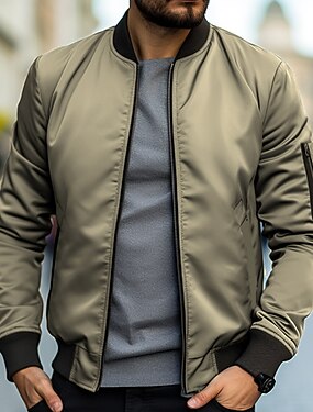 Hombre Chaqueta de bombardero Chaqueta de transición Ropa Cotidiana Cortavientos Bolsillo con cremallera Todas las Temporadas Plano Ropa de calle Escote Chino Regular Negro Amarillo Rojo Verde
