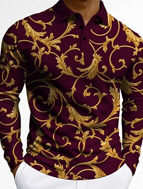 Hombre Floral Polo Manga Larga Camisas de polo Diseño Vintage Casual Ropa Deportiva Ropa Cotidiana Impresión 3D Botones Primavera Otoño Invierno Negro Rojo Azul Piscina