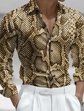 Hombre Diseño en Serpiente Camisa Camisa de raso Camisa para Vestido Manga Larga Moda informal Vacaciones Uso Diario Verano Primavera Otoño Cuello Vuelto Impresión 3D Camisas con botones Caqui Gris