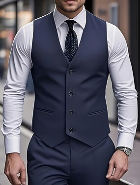 De los hombres Trajes Negocio Boda Uva Azul Marino Primavera, Otoño, Invierno, Verano Traje Solapa de Pico Moda Formal Color sólido Estándar Juego de 3 piezas Recto 1 botón