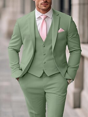 De los hombres Trajes de fiesta boda en la playa Boda de primavera verde claro Primavera verano Traje Solapa de Pico Formal Color sólido Ajustado Juego de 3 piezas Recto 2 botones
