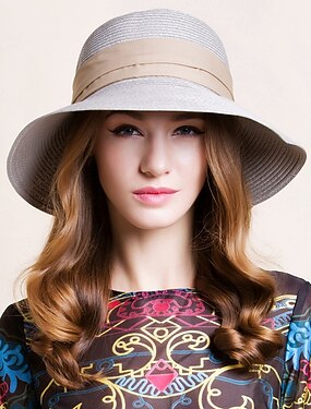 Elegantes sombreros retro de lana 100% con lazo 1 pieza casual/bohemio sombrero de paja de playa/sombreros de paja con lazo de satén casual/tocado de vacaciones/protección solar