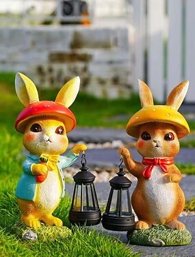 Farol de conejito de resina solar impermeable para exteriores de Pascua, decoración de césped para camino de jardín, iluminación de paisaje de granja, linda figura de conejo, luz decorativa de acento