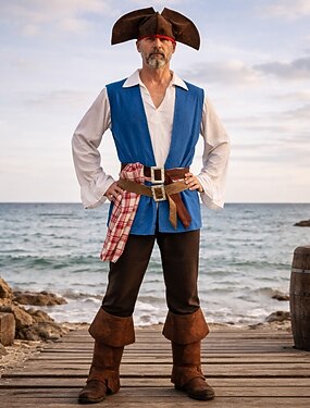 Conjunto Medieval Renacimiento Pantalones Sombreros Chaleco con accesorios Larga Pirata Disfraz Hombre Víspera de Todos los Santos Carnaval Mascarada Feria del Renacimiento Fiesta temática retro