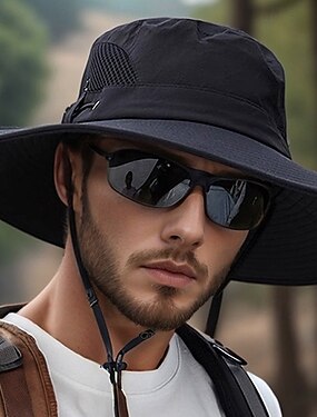 Sombrero de sol de poliéster impermeable de ala ancha para hombre, plegable, multicolor, para pesca, senderismo, vacaciones en la playa, camping, trekking y viajes informales.