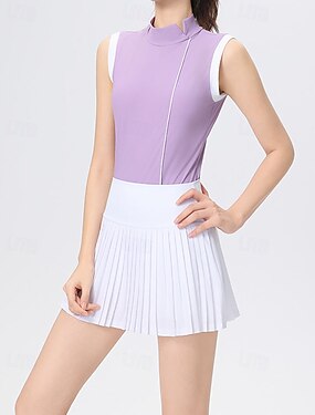 Mujer Color sólido Sudadera tipo polo Falda de tenis Top deportivo Sin Mangas Retazos Transpirable Tenis Golf Corriendo Cuello Alto Camiseta sin mangas Espalda de tanque Violeta Amarillo Azul Ropa de