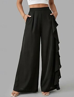 Mujer Pantalones de satén Perneras anchas Chinos Pantalones Ropa de calle Casual Longitud total Media cintura Plano Correa Bolsillo Cómodo Rígido Diario Exterior Negro Verano Primavera Holgado