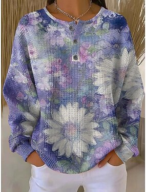 Mujer Sudadera Botones Floral Graphic Moda Casual Estampado Manga Larga Cuello Barco Tops regulares Casual Hogar Trabajo Azul Piscina Negro y Rojo Verde Claro Morado Naranja Verano Primavera